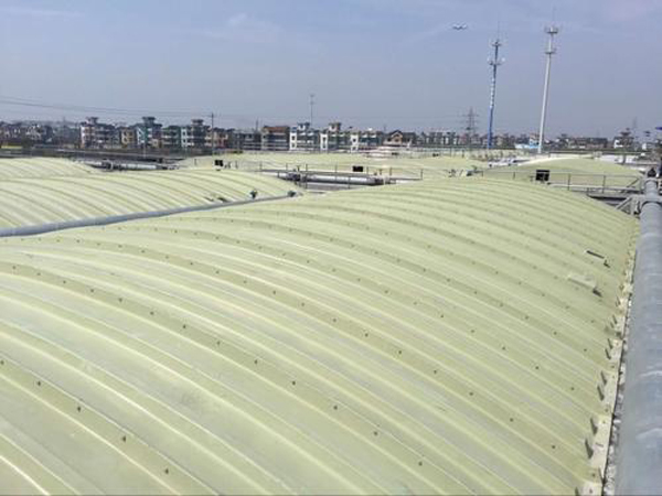 3、輕質高強、安裝方便:玻璃鋼集氣罩比重僅為鋼制品的1/3至1/4,固化程度高,載荷負重大,強度高,適用于大跨度池體,同時蓋板可分為若干小塊,便于運輸、安裝。