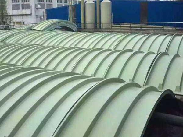 3、輕質(zhì)高強(qiáng)、安裝方便:玻璃鋼集氣罩比重僅為鋼制品的1/3至1/4,固化程度高,載荷負(fù)重大,強(qiáng)度高,適用于大跨度池體,同時(shí)蓋板可分為若干小塊,便于運(yùn)輸、安裝。